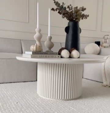 Mesa de centro redonda moderna con diseño acanalado de madera maciza